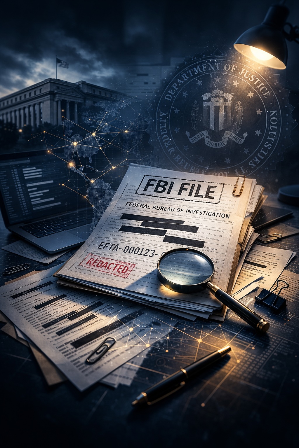 Tietokanta sisältää FBI:n tutkinta-asiakirjoja Jeffrey Epsteinin seksuaalirikostapauksesta. Alla keskeisiä teemoja ja dokumenttityyppejä joita aineistosta löytyy.